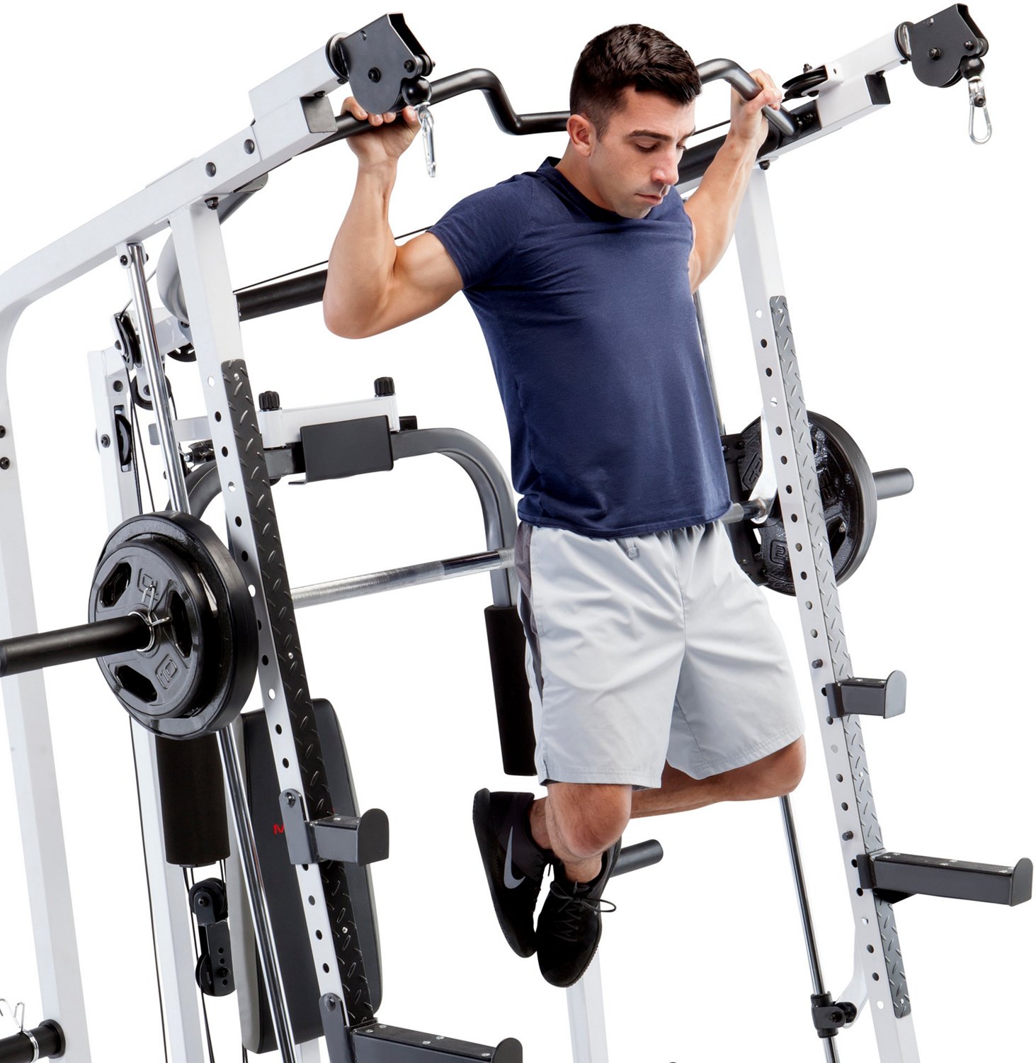Amazon Com Marcy Pro Smith Cage Workout Machine Total Body Training Home Gym System W Leg Developer Press Bar Pec Deck Cable Crossovers Squat Rack White Sports Outdoors